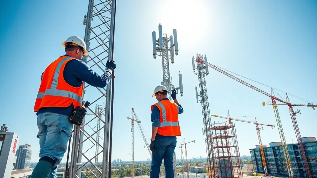 Deployment of 5G infrastructure for ultra-fast mobile connectivity.